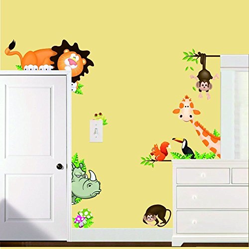 -. Title : AWAKINK(TM) Jungle Wild Animal Monkeys Birds Lion Giraffe Mushrooms Wall Stickers Removable Wall Decal for Kids Baby Nursery Room Children's Bedroom