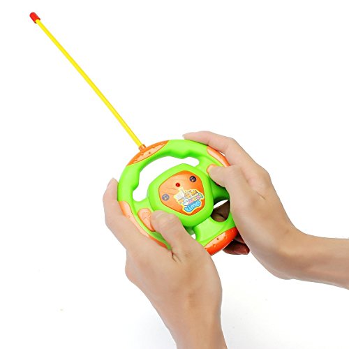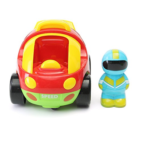 Smooth looking sleek wheels ensure the car's lightning high speed. The car also has a removable race car driver that your little can take out and play with! With exciting music and cool lights effect, this toy adds more fun to your little ones play time. Bright colors attracts kids attention. Cute and stylish, this remote control race car is a great introduction to remote control toys for young children and toddlers alike.
