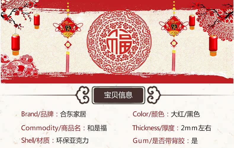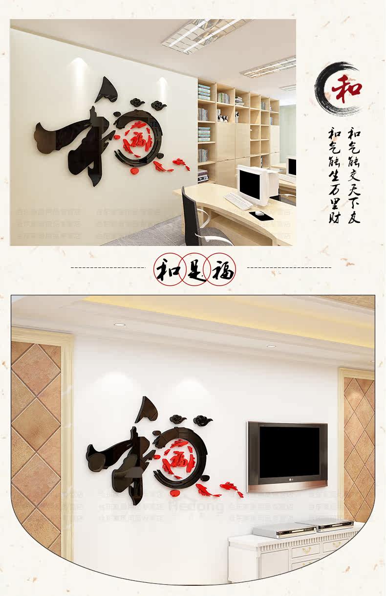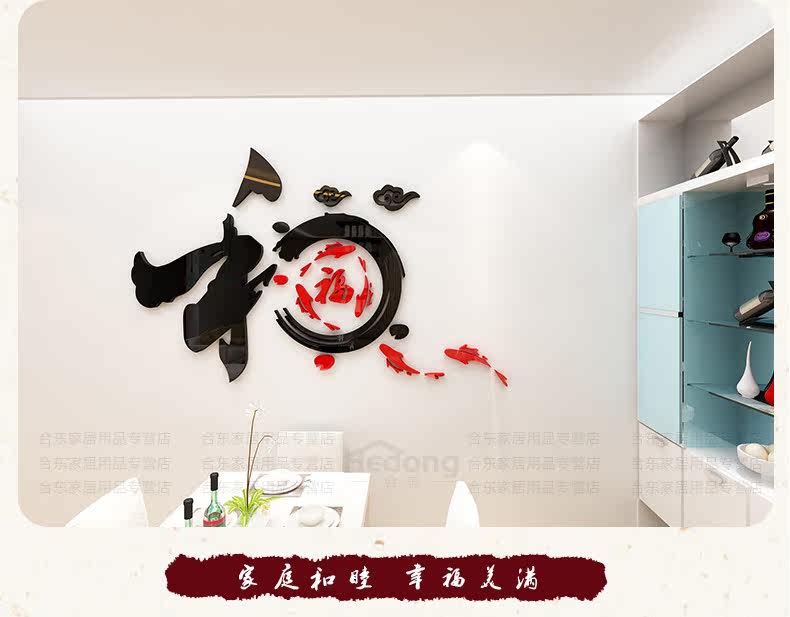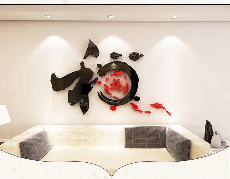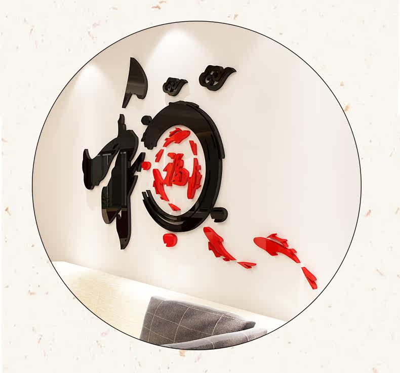 福字鱼3d立体字画墙贴贴纸中国风玄关走廊贴画客厅餐厅背景墙装饰