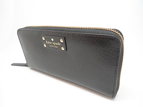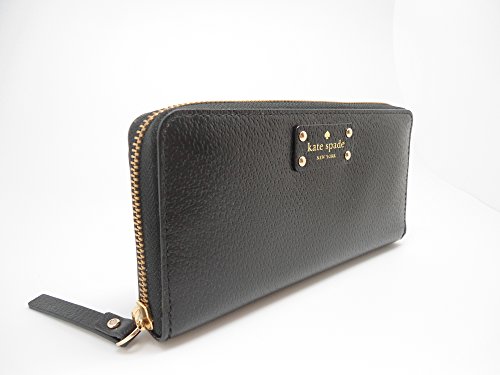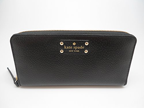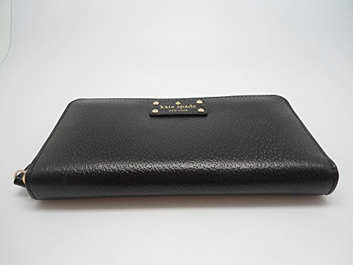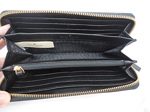 Studio : UnAssigned Publisher : UnAssigned Binding : Apparel Product Description Wrapped in textured black leather with gold tone hardware. This Kate Spade zip around wallet is accented with the Kate Spade name plate on the front and features a full length slip pocket on the back. Top stitch detailing throughout. The interior is tan leather with either a coordinating cream and tan polka dot fabric, or a pink custom print fabric. Kate Spade produces each version. It features a center zippered compartment, 12 card slots and multiple full length bill compartments. Overall measurements of approximately 7.75" (L) x 4.25" (H) x 1" (W). 0