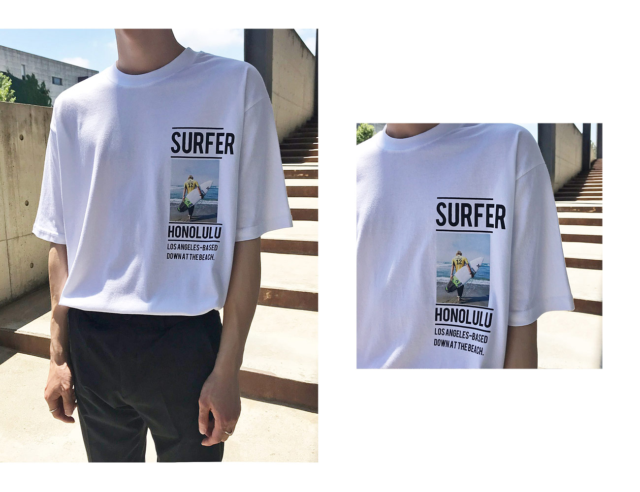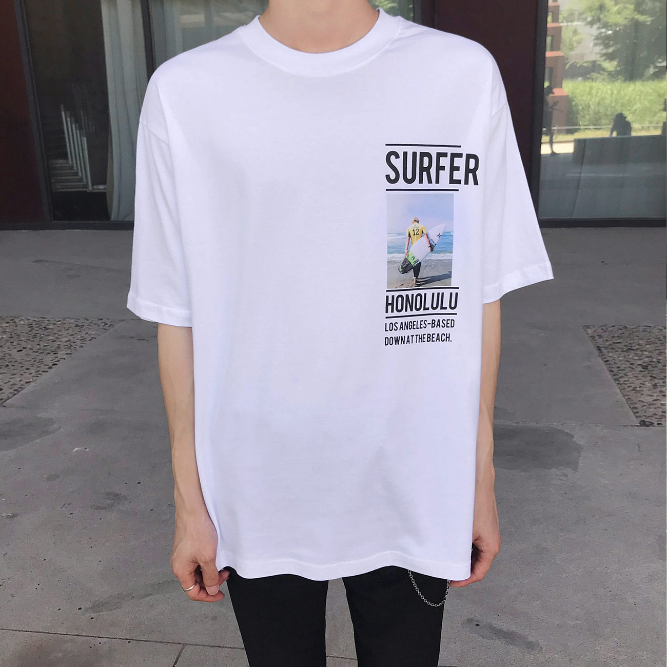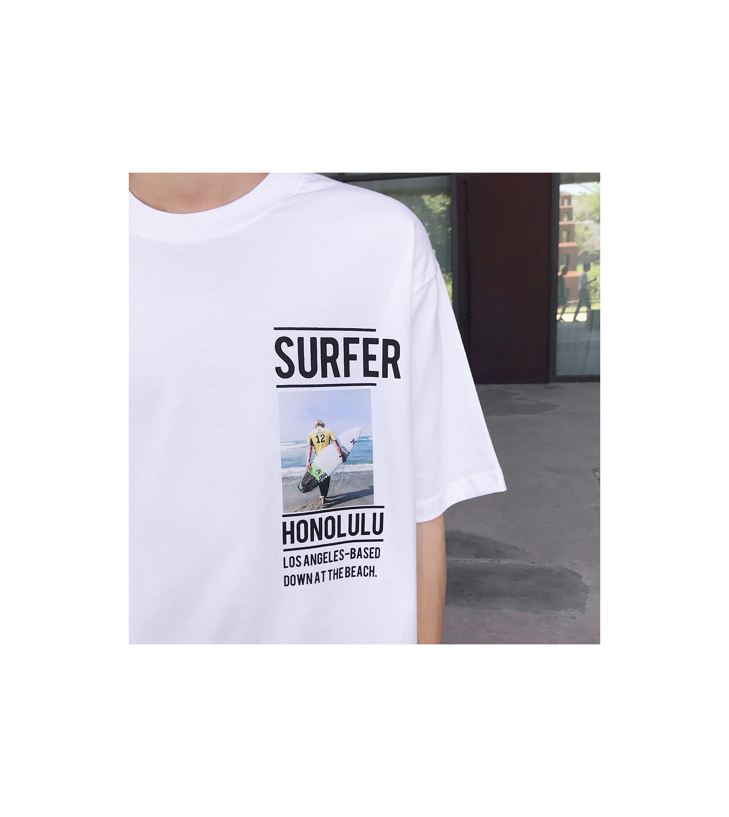 서퍼 나염 반팔 티셔츠