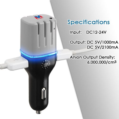 Studio : Cell Accessories For Less (TM) Publisher : Cell Accessories For Less (TM) Binding : Wireless Phone Accessory Product Description Cell Accessories For Less (TM) Specifications:Max Output Current: 3.1AInput Voltage Range: 12V-24VAnion Output Density: 6,000,000 / cm3 Description:Generates anion (negative ion) which purifies the air within the car, keeping it fresh and clean.Inhibits bacterial growth by eliminating smoke/pet odors and detoxifies the air of harmful pollutions.Rapidly clears the air which relieves fatigue driving and prevents the spread of viruses.Dual USB ports allow you to charge multiple wireless devices at the same time.Built-in LED light indicates power status Instructions:Plug the Anion Car Charger with Air Purifier into the cigarette lighter socket. The blue LED will light up, indicating the car charger and air purifier has power and is connected properly. To use the car charger with any USB device, insert a cable into one of the available USB sockets; plug your device into the other end of the cable to begin receiving power.Unplug the cable from the anion car charger after the device has been fully charged. To power off the car charger and air purifier, simply unplug the car charger from the cigarette lighter socket. The blue LED will turn off.Cell phones and accessories have become one of the most crucial personal technology purchases. If you don't know which cell phone, iPhone case, or Bluetooth headset to buy, we are here to help. The Target Buys is the perfect one-stop shop for a cell phones, cases, cell phone chargers, cell phone batteries and other accessories. You can choose a smartphone from brands like Samsung, Apple, Amazon Fire, LG, Blackberry, Motorola, Nokia, HTC, Kyocera, ASUS, ZTE, Blu, Sony, Pantech, and Casio. In accessories you have the option to choose from brands like OtterBox, Jawbone, Speck, iOttie, Jabra, Jaybird, and Plantronics. With The Target Buyst you're sure to end up with great accessories. You also have the choice of selecting accessories made for major providers like ATT, Verizon, Sprint, T-Mobile, Virgin Mobile, Boost Mobile, MetroPCS, Net1 0