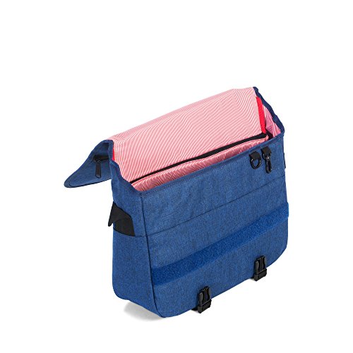 The Pop Quiz Messenger is a quintessential shoulder bag with a hidden clip fastened flap and multiple compartments, including a padded laptop sleeve. The quick-release cross body strap features a removable stabilizer designed to securely fasten the strap over the right shoulder when cycling.Feature