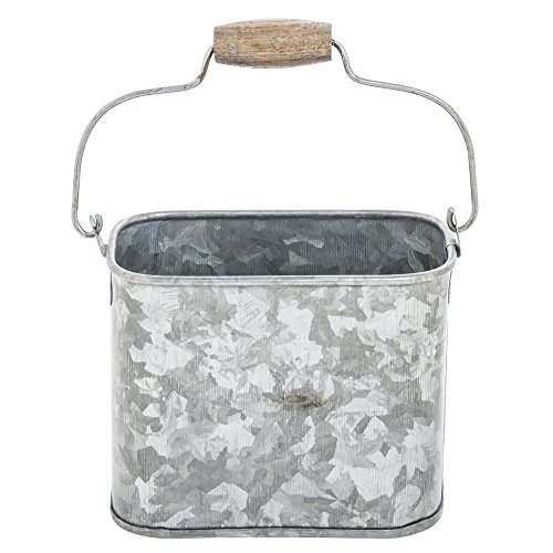 Studio : Hubert Publisher : Hubert Product Description Organize olive oil, dressings and other tabletop condiments in this handy caddy. The galvanized metal construction has a food-safe coating and is dishwasher safe. A wood and wire handle makes transport easy and adds a rustic look and feel. The caddy measures 5" x 3" x 4 1/2" (L x W x H). 0