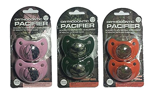 -. Binding : Baby Product -. Brand : Mossy Oak -. Feature : Includes () Orthodontic Pacifiers! / Features a Camouflage Design! / Designed to Help Natural Development of Healthy Teeth and Gums! / Dishwasher Safe! (Top Rack) / Recommended Ages 0-6 Months -. IsAdultProduct : 0 -. Label : Mossy Oak -. Manufacturer : Mossy Oak -. ProductGroup : Baby Product -. ProductTypeName : BABY_PRODUCT -. Publisher : Mossy Oak -. Studio : Mossy Oak -. Title : Set of () Camouflage Orthodontic Pacifiers Designed to Help Natural Development of Healthy Teeth and Gums