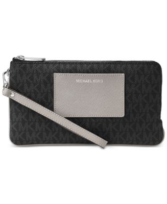 Gleaming zippers top a slim, sophisticated MICHAEL wristlet detailed with a contrasting front slip for stashing an ID and metrocard.10"W x 5-1/2"H x 1"D