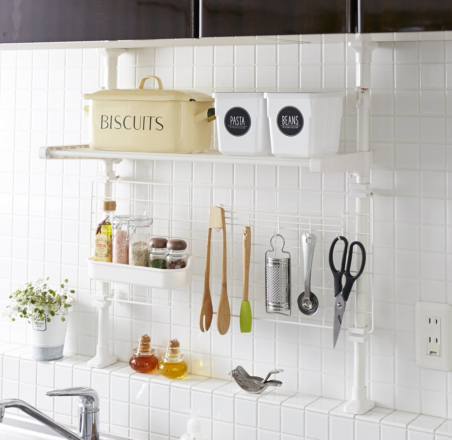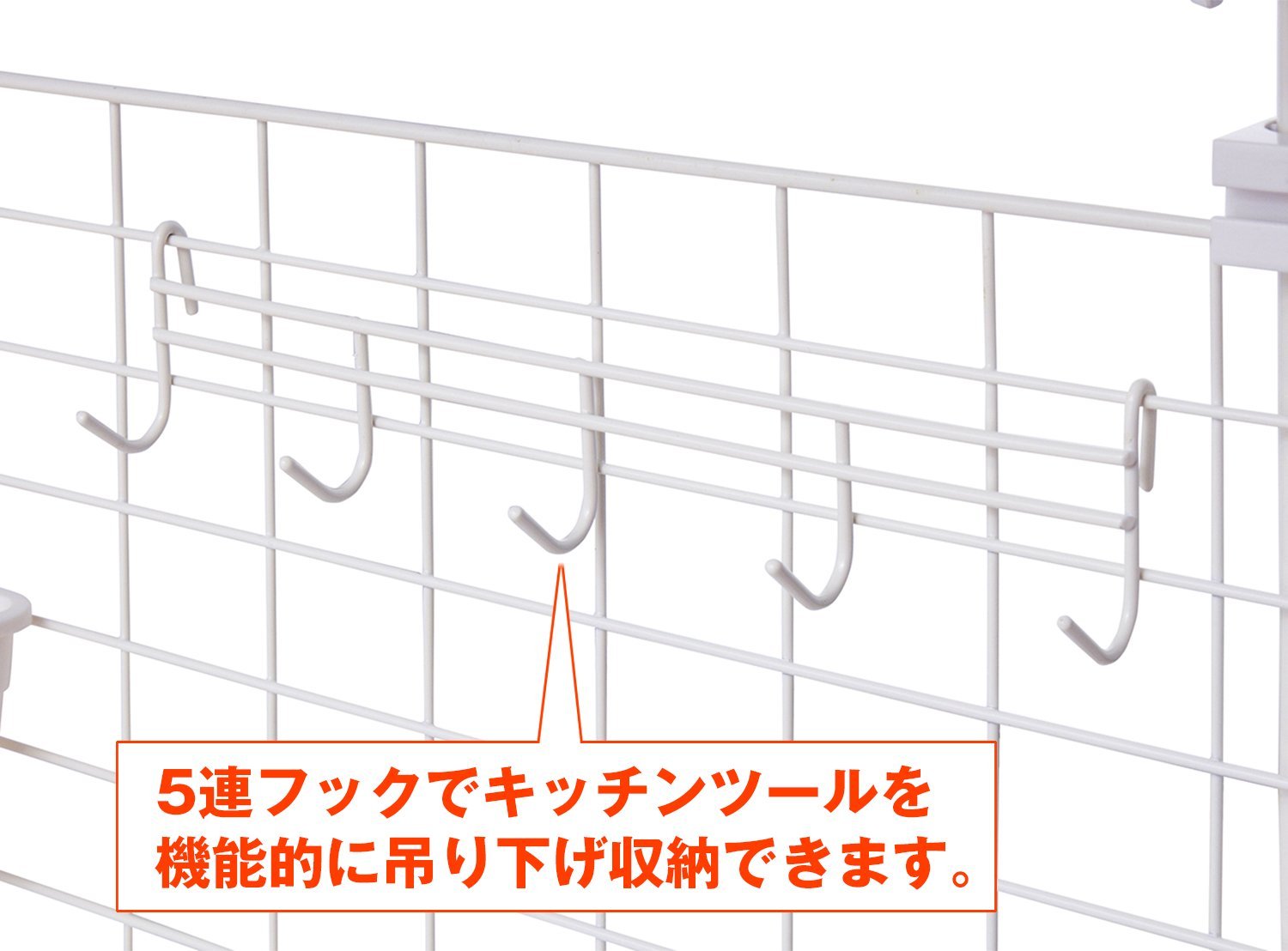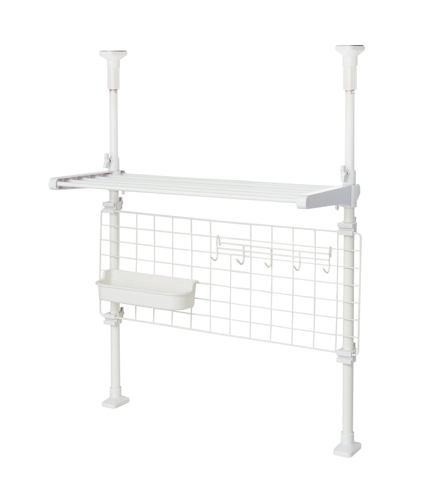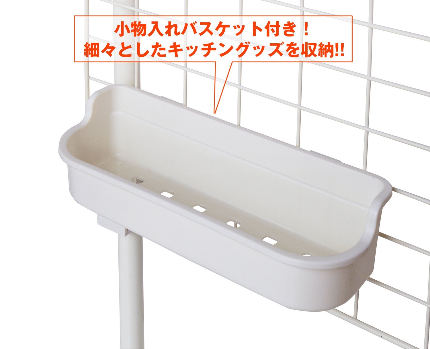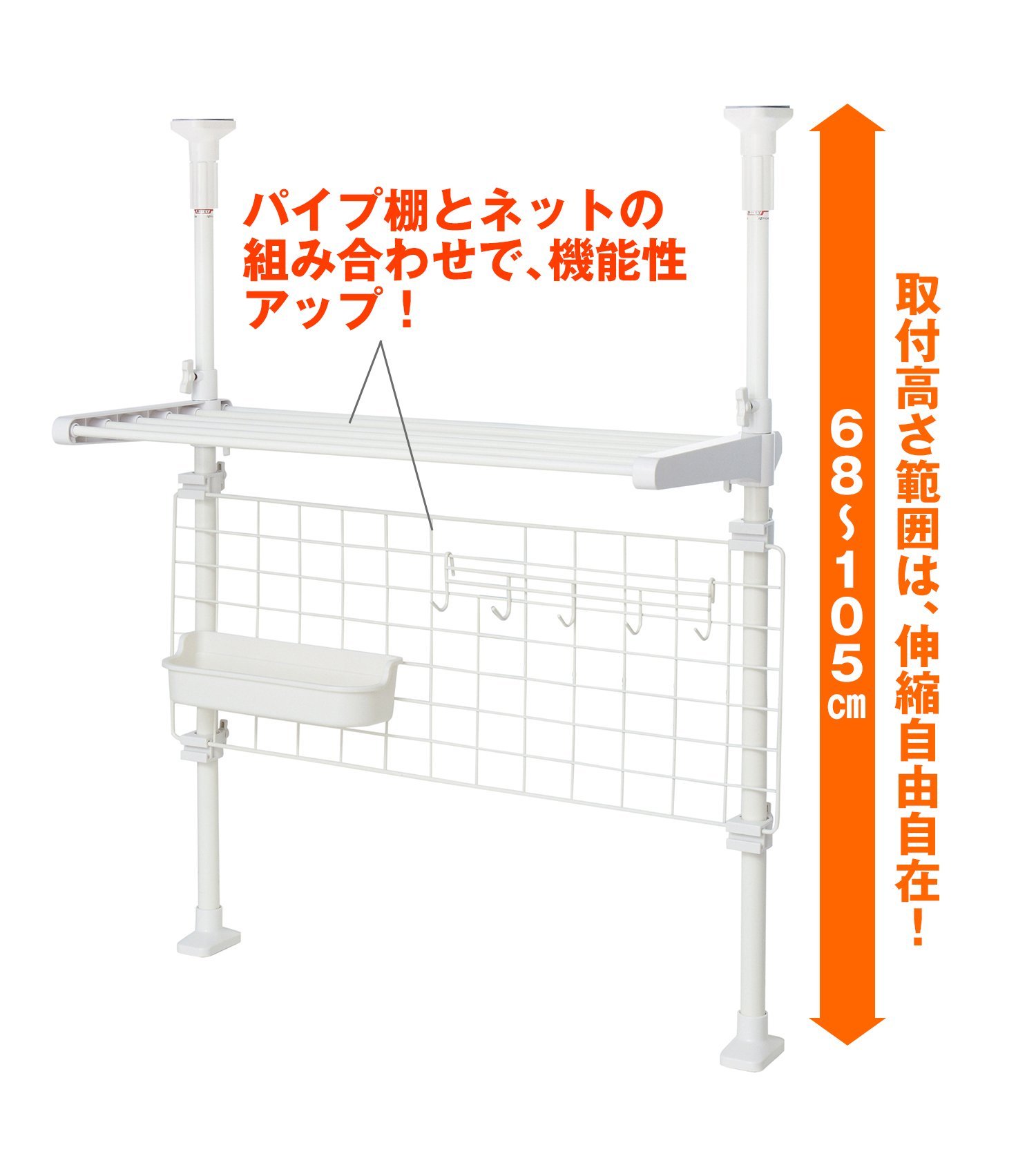 ● UP as usability with a combination of pipe shelf, basket (accessory), five-row hook, net