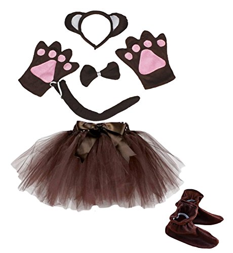-. Title : Monkey Headband Bowtie Tail Gloves Shoes Brown Tutu 6pc Girl Costume for Party