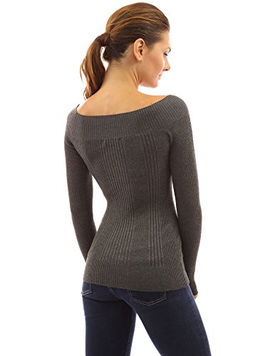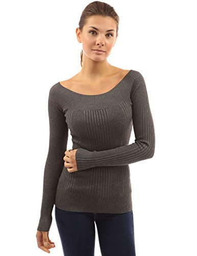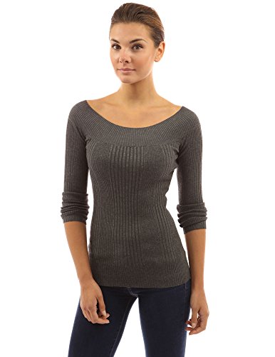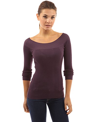PattyBoutik Boat Neck Ribbed Detail Long Sleeve Pullover Solid Sweater Knit Top. Model in pictures is 5 feet 8 inches (173cm) tall.