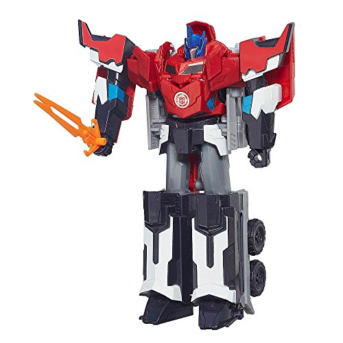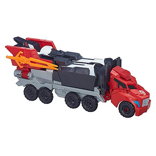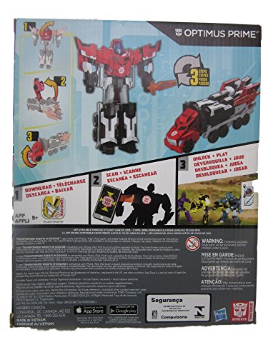 -. Feature : 3-Step Changers Optimus Prime figure / Figure converts from robot mode to combat vehicle mode and back / Converts in 3 speedy steps / Figure's badge unlocks character in the Transformers Robots in Disguise app (device not included)