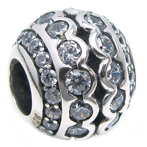 -. Title : Sterling Silver Enthic Flower Cubic Zirconia European Style Bead Charm