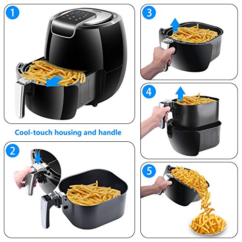 TOUCH SCREEN CONTROL & LARGE CAPACITY -- The digital touch screen temperature controls up to 392°F, 30-minute timer with auto shut-off. Big 5.6 Qt capacity, 1800 watts of power, perfectly feeds up to a family of 4 and more.