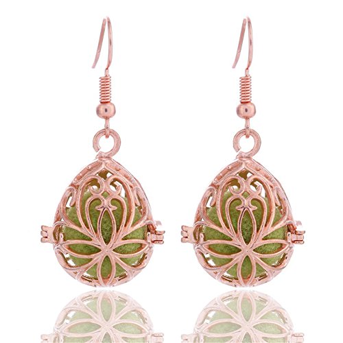GIONO Filigree Leaf Drop Cage Openable Aromatherapy Essential Oil Diffuser Locket Lava Stone Earring Set