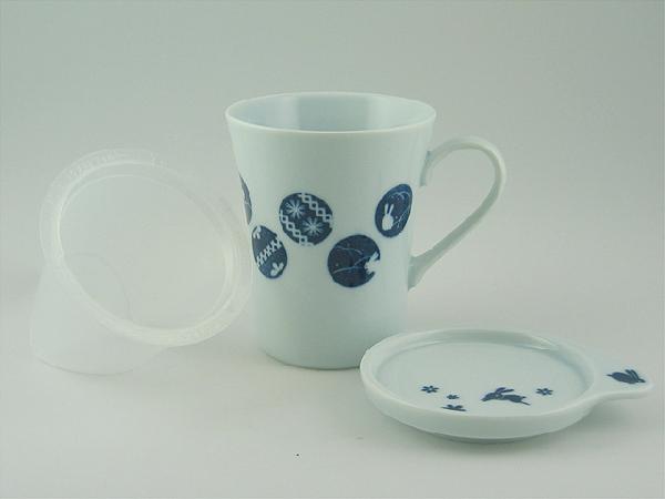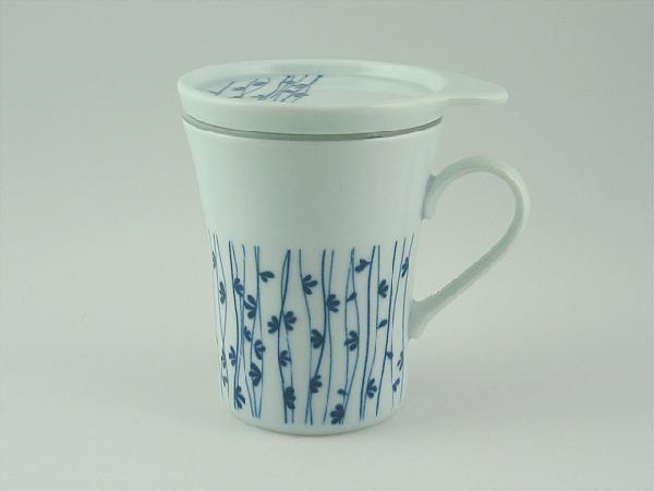 藍雫シリーズ~蓋付フィルター入になります。蓋にはちょっとしたお菓子を盛り付けて、ソーサーとしても使ってもOK。同柄の耐熱ガラスティーポットとあわせてどうぞ。