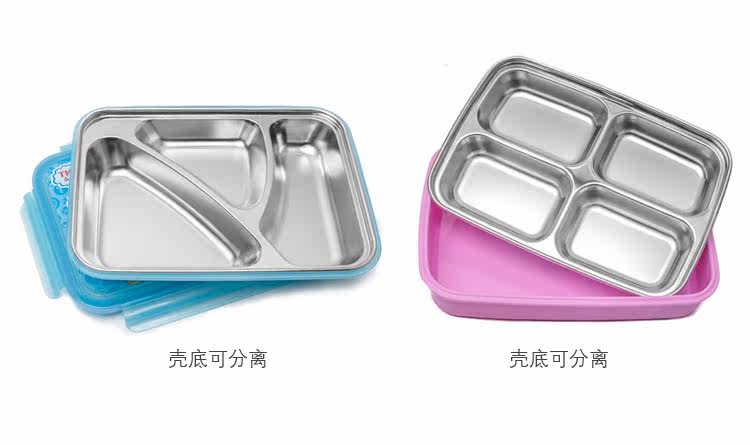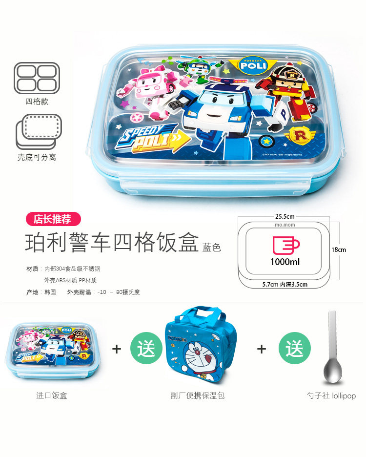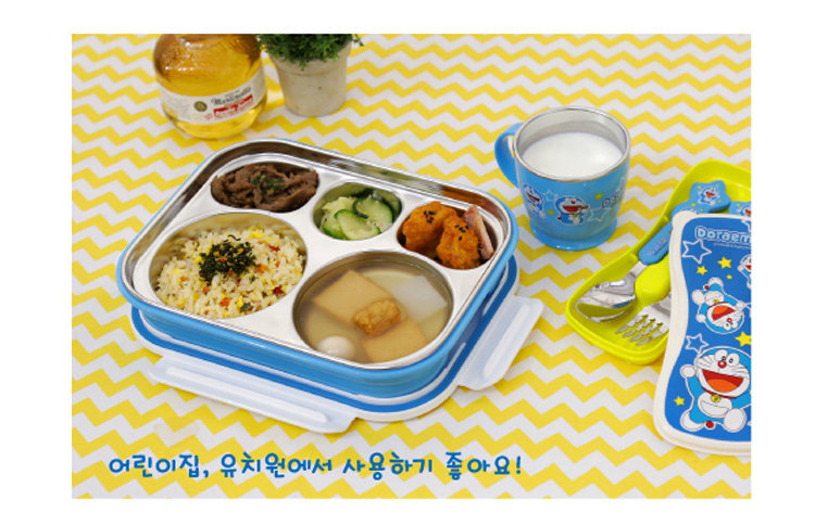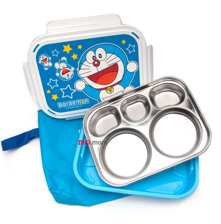 哆啦A梦不锈钢儿童分格餐盘尺寸:长约25cm*宽约19cm*高约5cm (参考尺寸)材质:304不锈钢+ABS+硅胶密封圈款式:描述:卡通可爱儿童不锈钢分格餐盘。不锈钢餐盘分有5个格子,可以装饭、装不同菜色,
