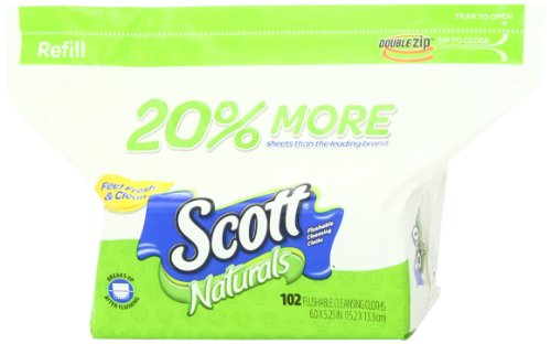Scott Naturals Folded Flushable Moist Wipes, 102-count Refill (Pack of 8)