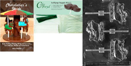 Cybrtrayd Sleigh Lolly Chocolate Mold with Chocolatier's Bundle of 25 Lollipop Sticks, 25 Cello Bags, 25 Green Twist Ties and Chocolatier's Guide
