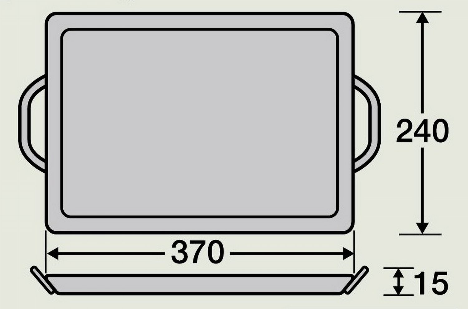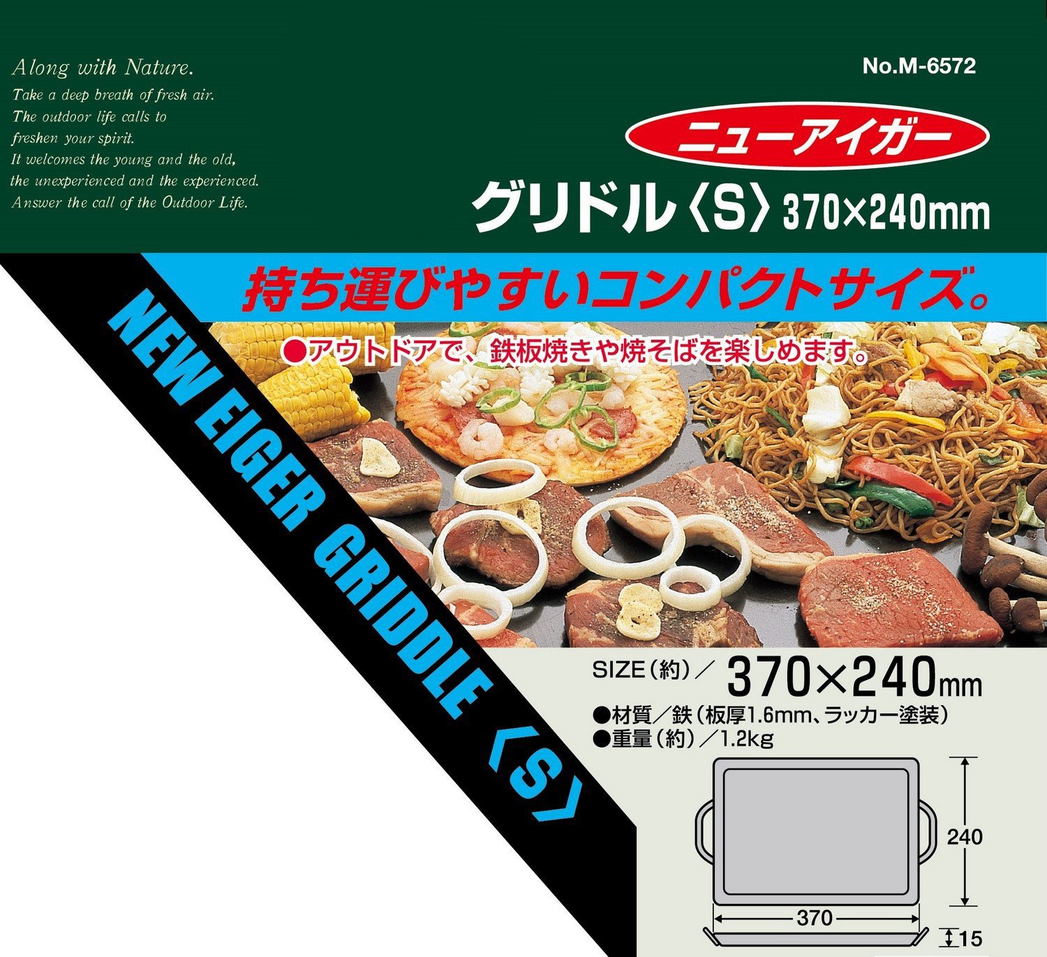 ◆ New Eiger Griddle (S) 370 × 240 mm / ■ Specifications ■ Size (approx): Width 370 × depth 240 × height 15 mm (body only), plate thickness: 1.6 mm Weight (approx.): 1.2 kg Material: Iron