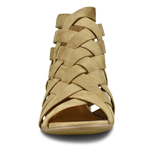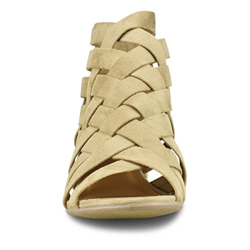 Premier Standard Women's Dressy Sandal Chunky Heel Open Toe - Front Pie Crossed Strap Shoe