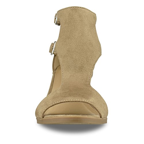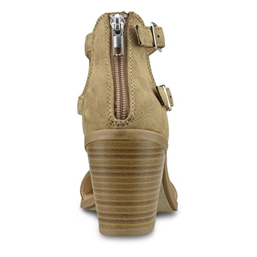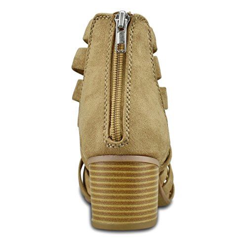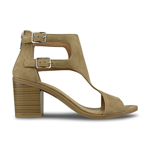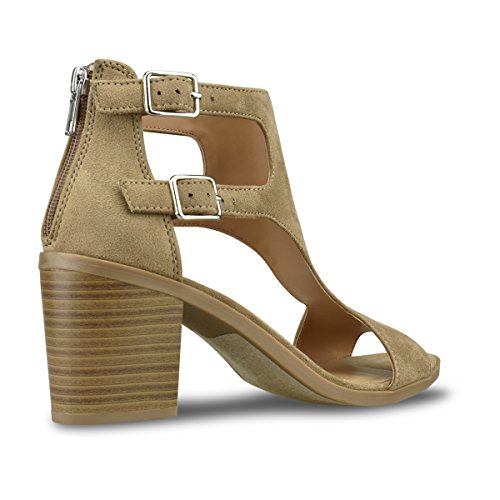 Product Description These?open toe sandals feature a beautiful chunky heel for perfect fit and height. Finished with a back zipper for easy on and off and cushioned insole for comfort. 0