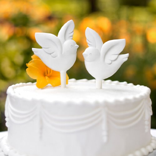 - Two white lovebird cake picks