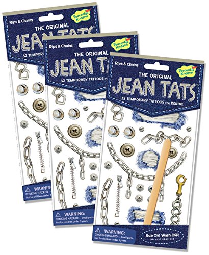 Studio : Peaceable Kingdom Publisher : Peaceable Kingdom Binding : Toy Product Description Kids love temporary tattoos because its always fun to show your colors - whether you like to wear a dinosaur on your cheek or a kitty on your hand, everyone can see what you love. Now Peaceable Kingdom has come up with a totally new, totally fun and totally easy way to show your colors on your clothing with Jean Tats - temporary tattoos for fabric! Jean Tats feature super fun graphics that require no heat to apply and that wash off during the next load of laundry - the easiest way to customize your look again and again! The tattoos work on most fabrics - simply cut out the tattoo, remove the backing paper, rub evenly onto your chosen clothing with the included wooden stick and carefully lift away the overlay. Now you're sporting your own unique look! A perfect party or sleepover activity - just what you expect from Peaceable Kingdom. Since 1983 play has been the heart and soul of Peaceable Kingdom. Silly play, special play, wholehearted play! We create experiences to help kids play well together, so they can play well in the world. Our games and gifts connect kids and families, encourage learning and self-expression and let imaginations soar. When play comes from the heart and feeds the soul, that's Peaceable Kingdom! 0
