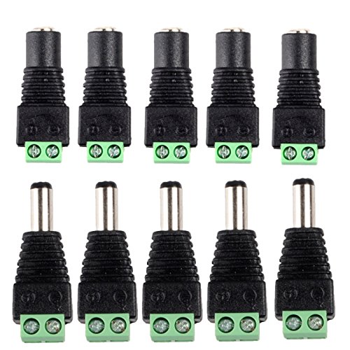 FolioGadgets 5.5mm x 2.1mm DC Power Connector, 2.1mm x 5.5mm Female & Male DC Plug for Led Strip CCTV Camera 1-38V Extension Cable - 10 Male & 10 Female