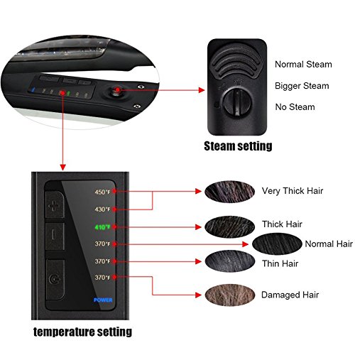 - ULTIMATE STEAM CARE: steam styler activates steam at and above 304°F each time closing the plates. Compared with normal or cold steam hair styler, hot steam enhances the infusion of moisture in hair and avoids heat damage in straightening or curling. Adding extra 1-3 drops of argan oil in pure water helps nourishing hair into more smooth, sleeker and healthier finish.