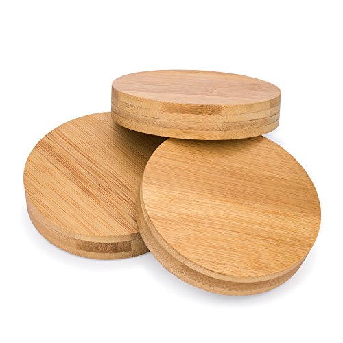 (Simple)/Kitchen Dining/Cookware Baking/DIRECT FROM USA/Decorative Mason Jar Lids | Bamboo Lid Covers | By Simple Life Cycle (Wide Mouth, 3 Pack)