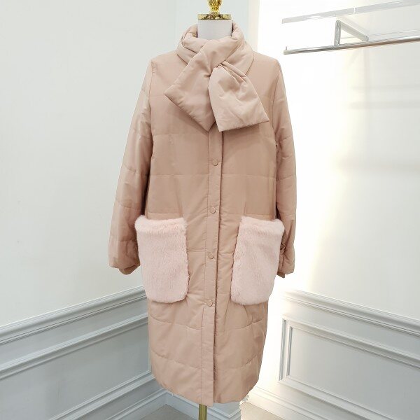 주머니 퍼장식이돋보이는 패딩으로옵션으로 머플러가있어용~♡총장98cm
