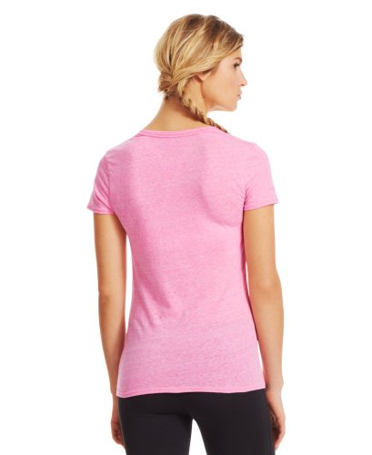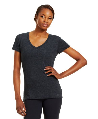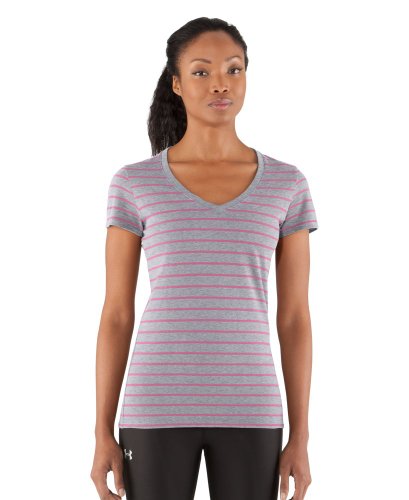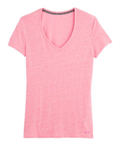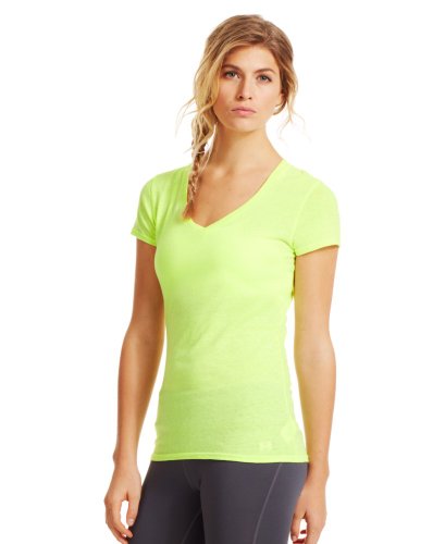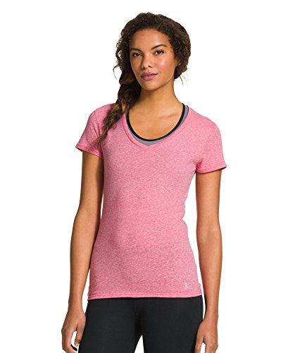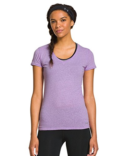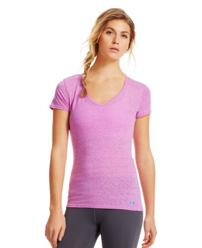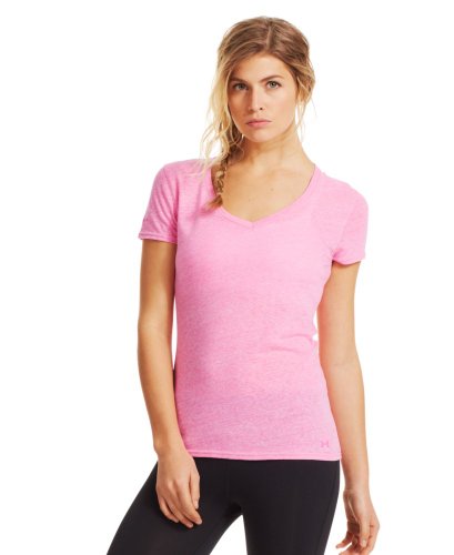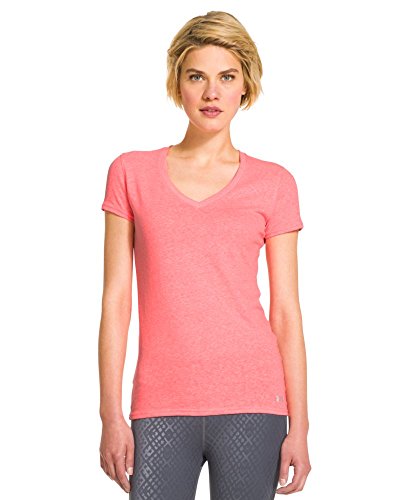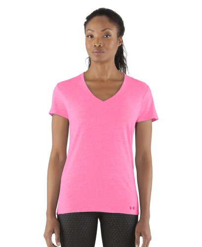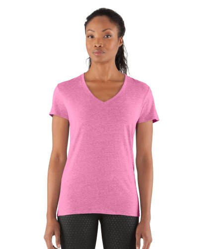 Cotton-rich tri-blend fabric has a soft, athletic feel for superior comfort and performance. Signature Moisture Transport System wicks sweat to keep you cool, dry, and light. Anti-microbial technology eliminates odors to keep your gear fresher, longer. Lightweight, stretch construction improves mobility & is perfect for layering. Deep V-neck collar & slimmer fitted fit deliver a sleeker, more feminine silhouette. Unique straddle stitch on shoulders add style & texture. UA logo on bottom left hem shows your preference for performance. Branded neck tape with updated women's wordmark for a hit of style. 3.83 oz Cotton/Polyester/Rayon. Imported.Feature