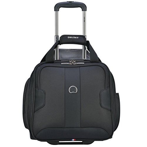 Studio : Delsey Luggage, Inc. Publisher : Delsey Luggage, Inc. Binding : Apparel Product Description This 2 wheeled Under seater by DELSEY is part of the sky max collection, which has tons of organization, a light yet tough construction at a great value. This bag conveniently features 9 pockets and fits under the airplane seat of most airlines. Constructed of durable micro Ballistic with vapor barrier for long lasting use. Features 2 inline wheels for superior maneuverability. Top and bottom carry handles for easy lifting. Worldwide limited 10 year warranty. 0