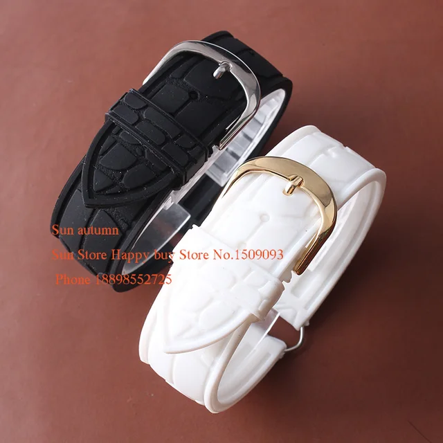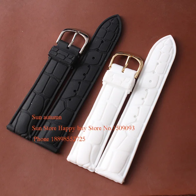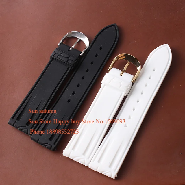 | [해외]20 미리메터 22 미리메터 남성/여성 고무 시계 줄, 블랙 화이트 실리콘, Solide 스틸 실버 배포 걸쇠, 시계 스트랩 악어 곡물 |