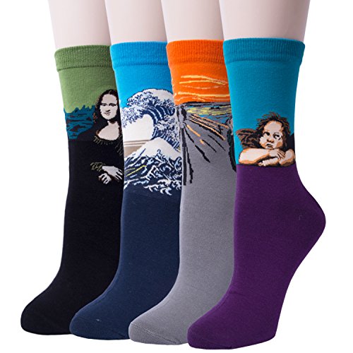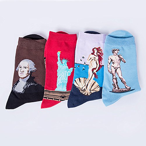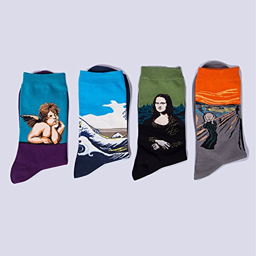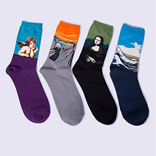 -. Brand : Petsvv -. Department : mens -. Feature : Material: 80% cotton / Package:4 pairs / High quality cotton provides a more stable and stretchy finish than basic weaves, breathable, absorbent, and deodorizing! / Great choice for gift giving on Christmas, birthday and Thanksgiving, etc / Note:Please be reminded that due to lighting effects and monitor's brightness/contrast settings etc, there might be some slight differences in the color tone of the website's photo and the actual item. -. ProductGroup : Apparel -. ProductTypeName : APPAREL -. Title : 4 Pack Of Men's Colorful Art Patterned Funny Casual Cotton Crew Socks