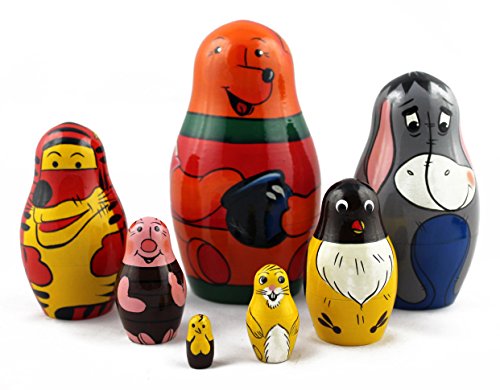 -. Title : Winnie the Pooh with Friends Handmade Wooden Russian Nesting Stacking Dolls Kids Gifts Room Decor 7pc