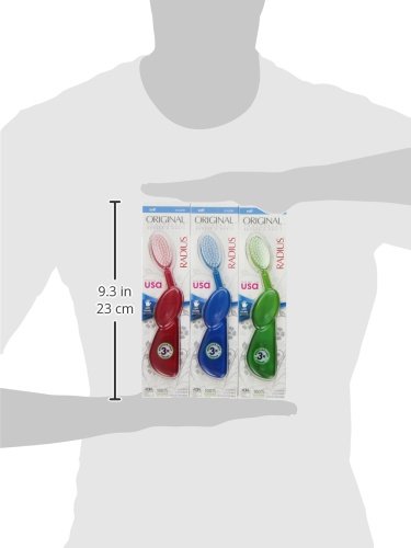 RADIUS Original Toothbrush handle is made from 100% cellulose bio-plastic from sustainable yield trees. Bristles made from 100% vegetable oil making for a 100% PETROLEUM FREE, BPA Free, Latex Free, Lead Free, Gluten Free, and Phthalates Free toothbrush! Customers will receive Original Toothbrush in an assorted pack of 3. Available colors are Red, Blue, Lime, Pink, Purple, Clear, and Coral. Colors choices are random and will vary; RADIUS adult toothbrushes also available in the SCUBA "Flexible-neck" Toothbrush, Tour Travel Toothbrush and the Source Toothbrush.
