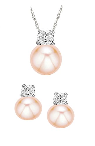 -. Title : Sterling Silver 7-8mm cultured Freshwater Pearls and CZ Necklace Earrings Set
