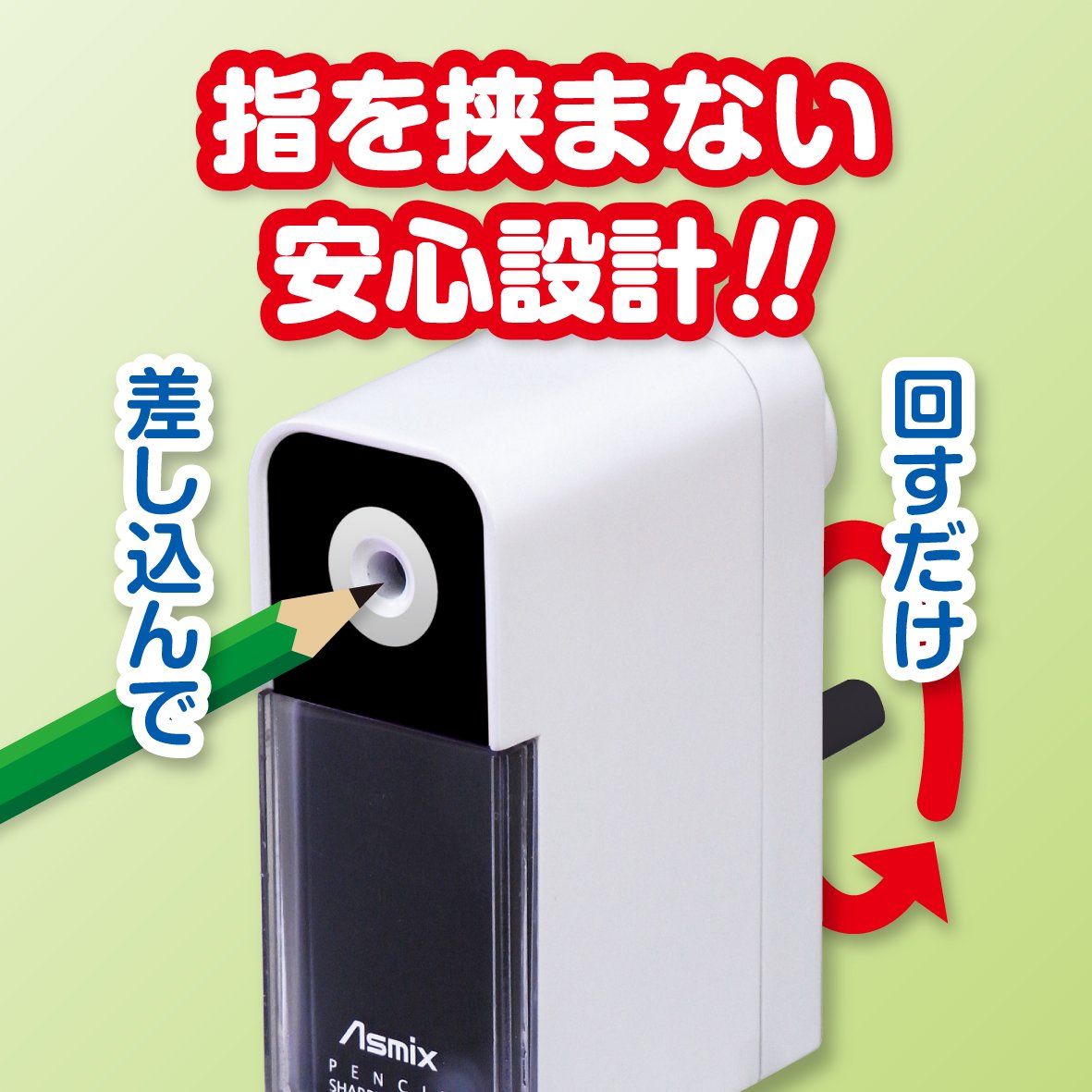 W13.9×D5.7×H13.9㎝ えんぴつを差して回すだけ、指を挟まない安全設計 コンパクトなスリムタイプだから手で押さえやすい 芯先調整機構つきだから、芯の太さが変えられます 切削可能鉛筆:外形8㎜までの木製鉛筆(三角鉛筆可) ダストボックス容量:約215ml/50回(ムダ削り防止機構つき)
