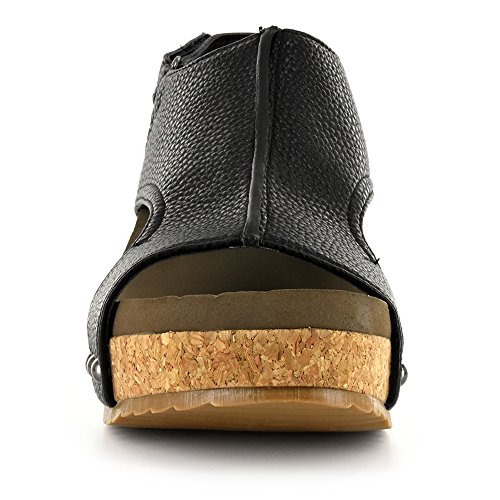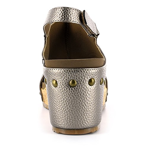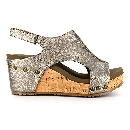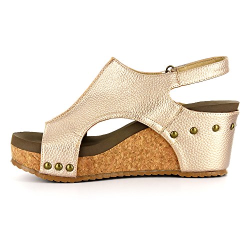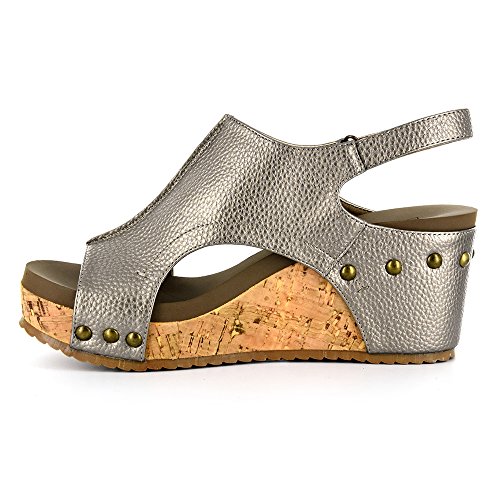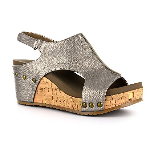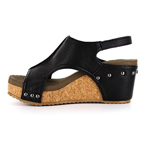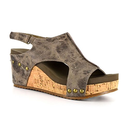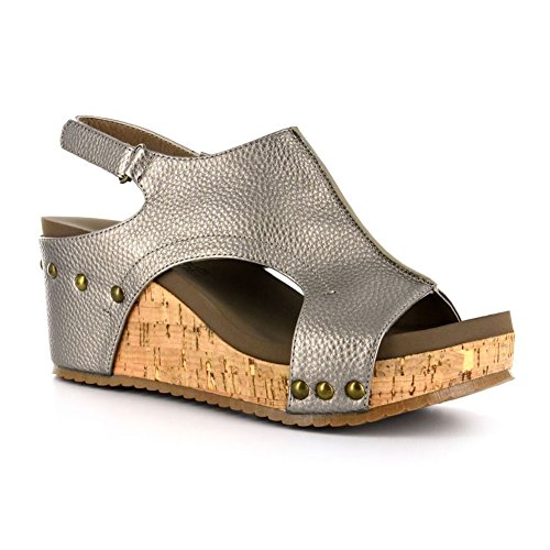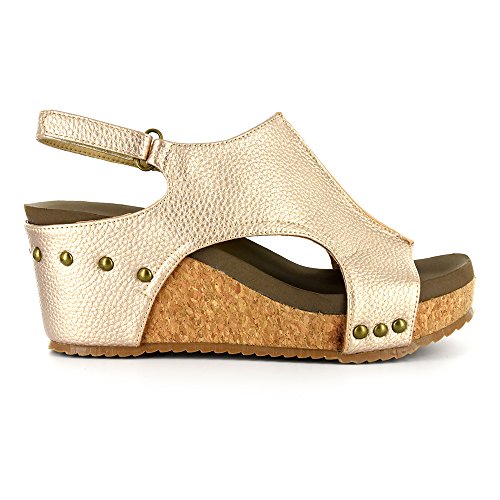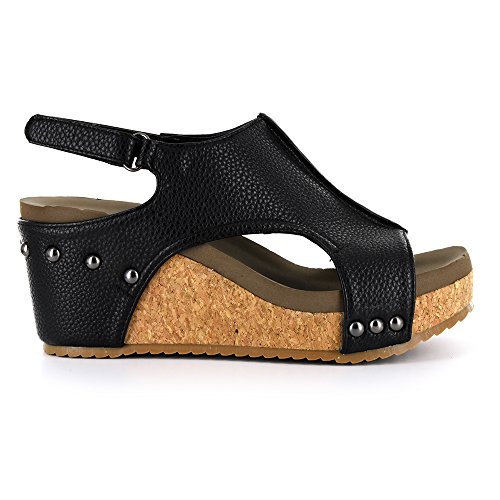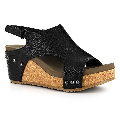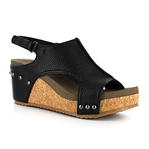 Studio : Corkys Publisher : Corkys Binding : Apparel Product Description *Give your warm-weather wardrobe a sweet style update with the London wedge *Synthetic upper with stud accents *Hook-and-loop heel strap closure *Lightly cushioned footbed *3" cork-look wedge heel *Available in whole sizes only, half sizes please order the next size up 0