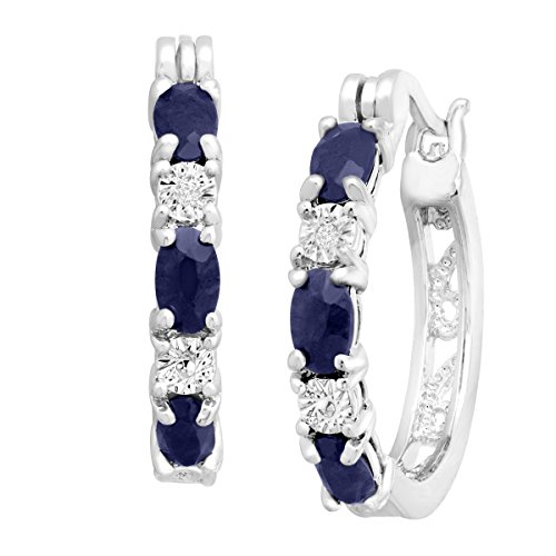 -. Title : 2 1/10 ct Natural Sapphire Hoop Earrings with Diamonds in Platinum over Brass, .875"