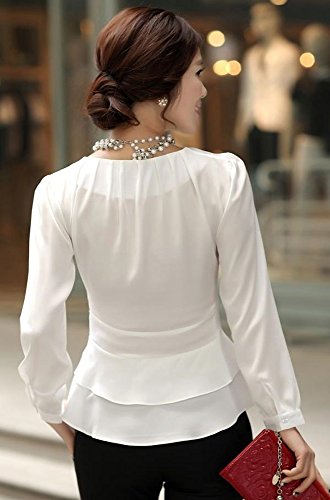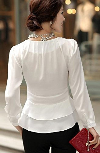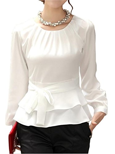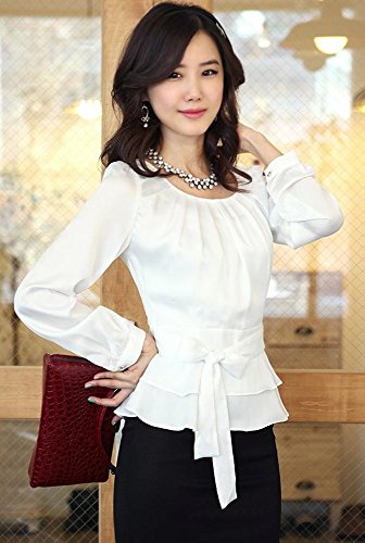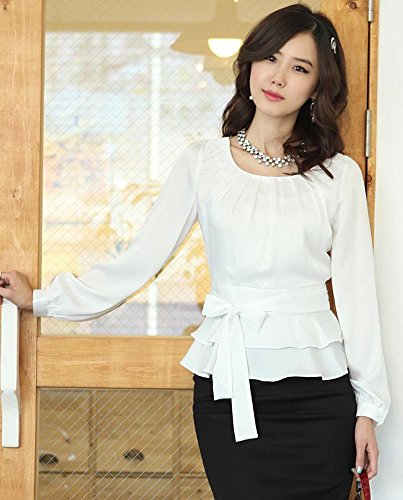 -. Title : (エリンコ モア) erinco more レディース ブラウス シフォン ぺプラムブラウス 長袖 白 襟なし 丸首 リボン