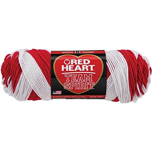RED HEART-Team Spirit. Go Team. This two color self-striping yarn is great for supporting your favorite teams and schools. Weight category: 4. Content: 100-percent acrylic 5oz/141g 244yd/223m. Gauge: Knit: 17st x 23r = 4in/10cm on US8/5mm needle Crochet: 12sc x 15r = 4in/10cm on I9/5.5mm hook. Care: Machine wash warm (104F/40C) on gentle cycle tumble dry low do not bleach do not iron may be dry cleaned. Made in USA.Feature