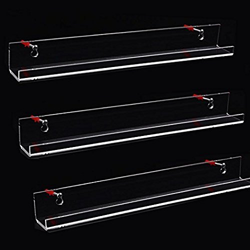 SET OF 3: Each Shelf Beautifully crafted from a single piece of Superior Premium Grade Acrylic, Quick and Easy to attach to the wall. Space-saving, Wall mounted, Modern display & storage design for all your Nail Polishes, Palettes, Eyeshadows, Lipsticks, Cosmetics, Essential Oils and more.1 pcs size:15X1.7X2