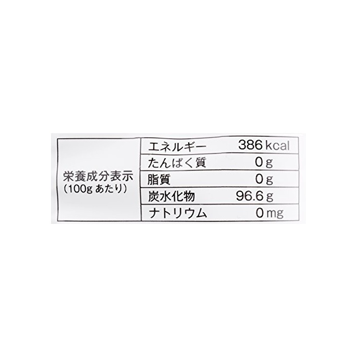 전성분 : 100g당 에너지 386kcal 단백질 0g 지질 0g 탄수화물 96.6g 나트륨 0mg