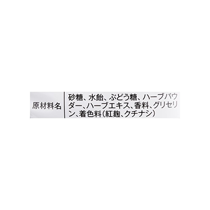 원재료 : 설탕 수 엿 포도당 허브 파우더 허브 엑기스 향료 착색료(홍누룩,치자나무)