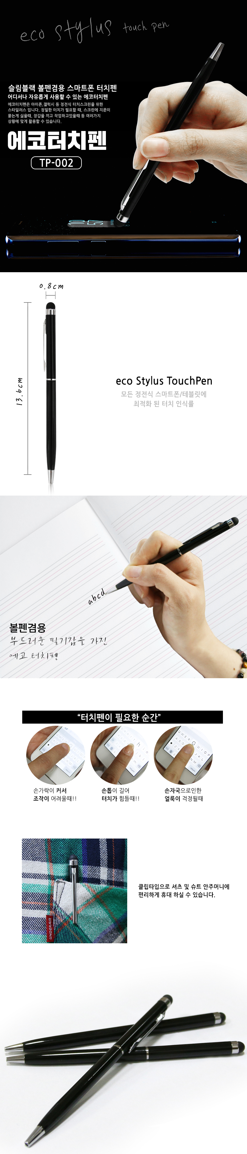 V30 TP-002 Slim Black Ball Pen Smartphone Galaxy iPhone Notebook 5 s8