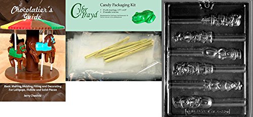 Cybrtrayd X-Mas Pretzel Top Assorted Chocolate Mold with Chocolatier's Bundle of 25 Cello Bags, 25 Green Twist Ties and Chocolatier's Guide