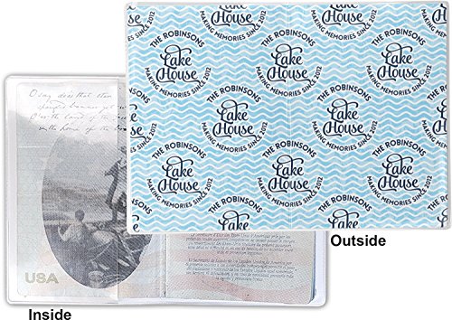 This cover is made of a sturdy clear vinyl with a personalized vinyl insert inside. There is a large and a small pocket on either side to hold the covers of your passport easily and firmly. The passport holder is approximately 5.25" x 7.5", the perfect size to snugly fit your passport. This slim cover is the perfect way to protect your passport without being one more bulky item you have to carry.
