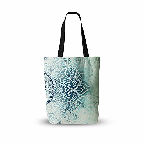 KESS InHouse Nika Martinez "Blue Mina Mandala" Navy Green Geometric Everything Tote Bag, 13" x 13", Multicolor