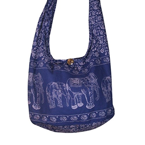Title : Thai Hippie Elephant Crossbody Bag Purse shoulder bag Thai Top Zip Color Dark Blue.